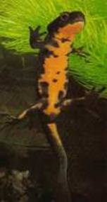 Salamandridae. Die Männchen der Gattung Cynops bilden alle keinen Rückenkamm